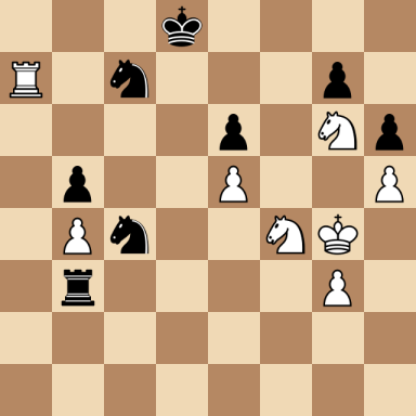 Alekhine, Alexander – Capablanca, Jose Raul ارسال شده توسط نویسنده اخبار شطرنج یار در اردیبهشت ۱۳, ۱۴۰۴ ۰ نظر (No content to display) Alekhine, Alexander Capablanca, Jose Raul Result: 1/2-1/2 Metadata » Click to open. Date: 1927.??.?? Location: Buenos Aires Tournament: World Championship 13th Round: 28 Opening: D67 Queen's Gambit Declined Orthodox, Bd3 line, Capablanca freeing manoeuvre Submitted by: Published on: اردیبهشت ۱۳, ۱۴۰۴ Categories: بازی های کاپابلانکا [Event "World Championship 13th"] [Site "Buenos Aires"] [Date "1927.??.??"] [Round "28"] [White "Alekhine, Alexander"] [Black "Capablanca, Jose Raul"] [Result "1/2-1/2"] [WhiteElo ""] [BlackElo ""] [ECO "D67"] 1.d4 Nf6 2.c4 e6 3.Nc3 d5 4.Bg5 Nbd7 5.e3 Be7 6.Nf3 O-O 7.Rc1 c6 8.Bd3 dxc4 9.Bxc4 Nd5 10.Bxe7 Qxe7 11.Ne4 N5f6 12.Ng3 Qb4+ 13.Qd2 Qxd2+ 14.Kxd2 Rd8 15.Rhd1 b6 16.e4 Bb7 17.e5 Ne8 18.Ke3 Kf8 19.h4 Ke7 20.h5 h6 21.Nh4 c5 22.f4 Nc7 23.dxc5 Nxc5 24.Rxd8 Rxd8 25.b4 N5a6 26.a3 b5 27.Bb3 Bd5 28.Bxd5 Nxd5+ 29.Ke4 Nb6 30.f5 Nc4 31.fxe6 fxe6 32.Ng6+ Ke8 33.Ne2 Nd2+ 34.Kf4 Nc4 35.Ke4 Nd2+ 36.Kf4 Nc4 37.Kg4 Nc7 38.a4 a6 39.axb5 axb5 40.Ra1 Rd3 41.Nef4 Rb3 42.Ra7 Kd8 43.g3 1/2-1/2 [Event "World Championship 13th"] [Site "Buenos Aires"] [Date "1927.??.??"] [Round "28"] [White "Alekhine, Alexander"] [Black "Capablanca, Jose Raul"] [Result "1/2-1/2"] [WhiteElo ""] [BlackElo ""] [ECO "D67"] 1.d4 Nf6 2.c4 e6 3.Nc3 d5 4.Bg5 Nbd7 5.e3 Be7 6.Nf3 O-O 7.Rc1 c6 8.Bd3 dxc4 9.Bxc4 Nd5 10.Bxe7 Qxe7 11.Ne4 N5f6 12.Ng3 Qb4+ 13.Qd2 Qxd2+ 14.Kxd2 Rd8 15.Rhd1 b6 16.e4 Bb7 17.e5 Ne8 18.Ke3 Kf8 19.h4 Ke7 20.h5 h6 21.Nh4 c5 22.f4 Nc7 23.dxc5 Nxc5 24.Rxd8 Rxd8 25.b4 N5a6 26.a3 b5 27.Bb3 Bd5 28.Bxd5 Nxd5+ 29.Ke4 Nb6 30.f5 Nc4 31.fxe6 fxe6 32.Ng6+ Ke8 33.Ne2 Nd2+ 34.Kf4 Nc4 35.Ke4 Nd2+ 36.Kf4 Nc4 37.Kg4 Nc7 38.a4 a6 39.axb5 axb5 40.Ra1 Rd3 41.Nef4 Rb3 42.Ra7 Kd8 43.g3 1/2-1/2 White to move: find the best move... click the ? for the solution Black to move: find the best move... click the ? for the solution Warning: This game can only be seen if JavaScript is enabled in your browser.