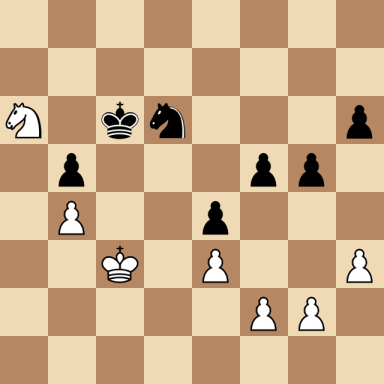 Alekhine, Alexander – Capablanca, Jose Raul ارسال شده توسط نویسنده اخبار شطرنج یار در اردیبهشت ۱۳, ۱۴۰۴ ۰ نظر (No content to display) Alekhine, Alexander Capablanca, Jose Raul Result: 1/2-1/2 Metadata » Click to open. Date: 1927.??.?? Location: Buenos Aires Tournament: World Championship 13th Round: 4 Opening: D64 Queen's Gambit Declined Orthodox, Rubinstein Attack (with Rc1) Submitted by: Published on: اردیبهشت ۱۳, ۱۴۰۴ Categories: بازی های کاپابلانکا [Event "World Championship 13th"] [Site "Buenos Aires"] [Date "1927.??.??"] [Round "4"] [White "Alekhine, Alexander"] [Black "Capablanca, Jose Raul"] [Result "1/2-1/2"] [WhiteElo ""] [BlackElo ""] [ECO "D64"] 1.d4 Nf6 2.c4 e6 3.Nc3 d5 4.Bg5 Be7 5.e3 O-O 6.Nf3 Nbd7 7.Rc1 c6 8.a3 a6 9.Qc2 Re8 10.Bd3 h6 11.Bf4 dxc4 12.Bxc4 b5 13.Ba2 Bb7 14.O-O c5 15.dxc5 Nxc5 16.Rfd1 Qb6 17.Be5 Rac8 18.Qe2 Nce4 19.Bd4 Bc5 20.Nxe4 Bxd4 21.Nxd4 Bxe4 22.Bb1 Rxc1 23.Rxc1 Bxb1 24.Rxb1 Rc8 25.Qe1 Qc7 26.h3 Ne4 27.Ne2 Qe5 28.Rc1 Rxc1 29.Qxc1 Qc5 30.Qxc5 Nxc5 31.Nd4 Kf8 32.b4 Na4 33.Kf1 Nb6 34.Nb3 Nc4 35.Nc5 Nxa3 36.Nxa6 Ke7 37.Ke2 Kd6 38.Kd3 Nc4 39.Nc5 f5 40.Kc3 Kd5 41.Na6 Kd6 42.Nc5 Nb6 43.Nd3 e5 44.Kb3 Nc4 45.Kc3 Kd5 46.Nc5 Nd6 47.Kd3 g5 48.Na6 e4+ 49.Kc3 Kc6 1/2-1/2 [Event "World Championship 13th"] [Site "Buenos Aires"] [Date "1927.??.??"] [Round "4"] [White "Alekhine, Alexander"] [Black "Capablanca, Jose Raul"] [Result "1/2-1/2"] [WhiteElo ""] [BlackElo ""] [ECO "D64"] 1.d4 Nf6 2.c4 e6 3.Nc3 d5 4.Bg5 Be7 5.e3 O-O 6.Nf3 Nbd7 7.Rc1 c6 8.a3 a6 9.Qc2 Re8 10.Bd3 h6 11.Bf4 dxc4 12.Bxc4 b5 13.Ba2 Bb7 14.O-O c5 15.dxc5 Nxc5 16.Rfd1 Qb6 17.Be5 Rac8 18.Qe2 Nce4 19.Bd4 Bc5 20.Nxe4 Bxd4 21.Nxd4 Bxe4 22.Bb1 Rxc1 23.Rxc1 Bxb1 24.Rxb1 Rc8 25.Qe1 Qc7 26.h3 Ne4 27.Ne2 Qe5 28.Rc1 Rxc1 29.Qxc1 Qc5 30.Qxc5 Nxc5 31.Nd4 Kf8 32.b4 Na4 33.Kf1 Nb6 34.Nb3 Nc4 35.Nc5 Nxa3 36.Nxa6 Ke7 37.Ke2 Kd6 38.Kd3 Nc4 39.Nc5 f5 40.Kc3 Kd5 41.Na6 Kd6 42.Nc5 Nb6 43.Nd3 e5 44.Kb3 Nc4 45.Kc3 Kd5 46.Nc5 Nd6 47.Kd3 g5 48.Na6 e4+ 49.Kc3 Kc6 1/2-1/2 White to move: find the best move... click the ? for the solution Black to move: find the best move... click the ? for the solution Warning: This game can only be seen if JavaScript is enabled in your browser.