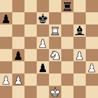 Botvinnik, Mikhail – Flohr, Salo ارسال شده توسط نویسنده اخبار شطرنج یار در اردیبهشت ۱۳, ۱۴۰۴ ۰ نظر (No content to display) Botvinnik, Mikhail Flohr, Salo Result: 1-0 Metadata » Click to open. Date: 1933.??.?? Location: Leningrad Tournament: Moscow/Leningrad m Round: 9 Opening: B13 Caro-Kann, Exchange Variation Submitted by: Published on: اردیبهشت ۱۳, ۱۴۰۴ Categories: بازی های میخائیل باتوینیک [Event "Moscow/Leningrad m"] [Site "Leningrad"] [Date "1933.??.??"] [Round "9"] [White "Botvinnik, Mikhail"] [Black "Flohr, Salo"] [Result "1-0"] [WhiteElo ""] [BlackElo ""] [ECO "B13"] 1.e4 c6 2.d4 d5 3.exd5 cxd5 4.c4 Nf6 5.Nc3 Nc6 6.Bg5 dxc4 7.d5 Ne5 8.Qd4 Nd3+ 9.Bxd3 cxd3 10.Nf3 g6 11.Bxf6 exf6 12.O-O Qb6 13.Rfe1+ Kd8 14.Qh4 g5 15.Qh5 Bd6 16.Qxf7 Rf8 17.Qxh7 g4 18.Nd2 Qc7 19.Qh6 Qf7 20.Nc4 Be5 21.Nxe5 fxe5 22.Qg5+ Qe7 23.Qxe5 Qxe5 24.Rxe5 Bf5 25.Rf1 Kd7 26.f3 b5 27.fxg4 Bxg4 28.h3 b4 29.Ne4 Rxf1+ 30.Kxf1 Rf8+ 31.Ke1 Bf5 32.g4 Bg6 33.Re6 1-0 [Event "Moscow/Leningrad m"] [Site "Leningrad"] [Date "1933.??.??"] [Round "9"] [White "Botvinnik, Mikhail"] [Black "Flohr, Salo"] [Result "1-0"] [WhiteElo ""] [BlackElo ""] [ECO "B13"] 1.e4 c6 2.d4 d5 3.exd5 cxd5 4.c4 Nf6 5.Nc3 Nc6 6.Bg5 dxc4 7.d5 Ne5 8.Qd4 Nd3+ 9.Bxd3 cxd3 10.Nf3 g6 11.Bxf6 exf6 12.O-O Qb6 13.Rfe1+ Kd8 14.Qh4 g5 15.Qh5 Bd6 16.Qxf7 Rf8 17.Qxh7 g4 18.Nd2 Qc7 19.Qh6 Qf7 20.Nc4 Be5 21.Nxe5 fxe5 22.Qg5+ Qe7 23.Qxe5 Qxe5 24.Rxe5 Bf5 25.Rf1 Kd7 26.f3 b5 27.fxg4 Bxg4 28.h3 b4 29.Ne4 Rxf1+ 30.Kxf1 Rf8+ 31.Ke1 Bf5 32.g4 Bg6 33.Re6 1-0 White to move: find the best move... click the ? for the solution Black to move: find the best move... click the ? for the solution Warning: This game can only be seen if JavaScript is enabled in your browser.