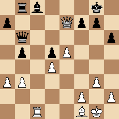 Botvinnik, Mikhail – Makogonov, Vladimir Andreevich ارسال شده توسط نویسنده اخبار شطرنج یار در اردیبهشت ۱۳, ۱۴۰۴ ۰ نظر (No content to display) Botvinnik, Mikhail Makogonov, Vladimir Andreevich Result: 1-0 Metadata » Click to open. Date: 1938.??.?? Location: Leningrad Tournament: URS-ch sf Round: ? Opening: A51 Budapest Gambit declined Submitted by: Published on: اردیبهشت ۱۳, ۱۴۰۴ Categories: بازی های میخائیل باتوینیک [Event "URS-ch sf"] [Site "Leningrad"] [Date "1938.??.??"] [Round "?"] [White "Botvinnik, Mikhail"] [Black "Makogonov, Vladimir Andreevich"] [Result "1-0"] [WhiteElo ""] [BlackElo ""] [ECO "A51"] 1.Nf3 Nf6 2.c4 e5 3.d4 d5 4.Nc3 Be7 5.g3 O-O 6.Bg2 c6 7.O-O b6 8.Nxe5 Bb7 9.e4 dxc4 10.Nxc4 Ba6 11.b3 Nbd7 12.Re1 Bb4 13.Bd2 b5 14.Ne3 Nb6 15.e5 Bxc3 16.Bxc3 Nfd5 17.Qd2 Nd7 18.Nxd5 cxd5 19.Bb4 Re8 20.Rac1 Rc8 21.Ba5 Qe7 22.Bf1 Nb8 23.Bb4 Qb7 24.Bd6 h6 25.a3 Rc6 26.Bxb8 Rxb8 27.Rxc6 Qxc6 28.Rc1 Qb6 29.Qb4 Bc8 30.Qe7 1-0 [Event "URS-ch sf"] [Site "Leningrad"] [Date "1938.??.??"] [Round "?"] [White "Botvinnik, Mikhail"] [Black "Makogonov, Vladimir Andreevich"] [Result "1-0"] [WhiteElo ""] [BlackElo ""] [ECO "A51"] 1.Nf3 Nf6 2.c4 e5 3.d4 d5 4.Nc3 Be7 5.g3 O-O 6.Bg2 c6 7.O-O b6 8.Nxe5 Bb7 9.e4 dxc4 10.Nxc4 Ba6 11.b3 Nbd7 12.Re1 Bb4 13.Bd2 b5 14.Ne3 Nb6 15.e5 Bxc3 16.Bxc3 Nfd5 17.Qd2 Nd7 18.Nxd5 cxd5 19.Bb4 Re8 20.Rac1 Rc8 21.Ba5 Qe7 22.Bf1 Nb8 23.Bb4 Qb7 24.Bd6 h6 25.a3 Rc6 26.Bxb8 Rxb8 27.Rxc6 Qxc6 28.Rc1 Qb6 29.Qb4 Bc8 30.Qe7 1-0 White to move: find the best move... click the ? for the solution Black to move: find the best move... click the ? for the solution Warning: This game can only be seen if JavaScript is enabled in your browser.