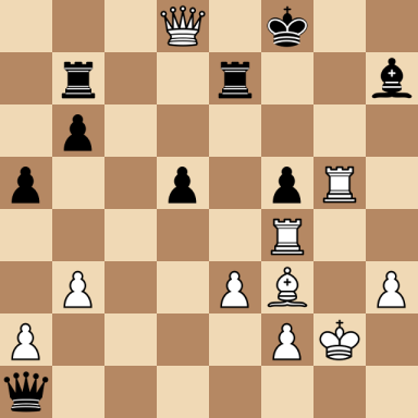 Botvinnik, Mikhail – Zagoriansky, Evgeny ارسال شده توسط نویسنده اخبار شطرنج یار در اردیبهشت ۱۳, ۱۴۰۴ ۰ نظر (No content to display) Botvinnik, Mikhail Zagoriansky, Evgeny Result: 1-0 Metadata » Click to open. Date: 1943.??.?? Location: Sverdlovsk Tournament: Sverdlovsk Round: 6 Opening: A13 English (1.c4 e6) Submitted by: Published on: اردیبهشت ۱۳, ۱۴۰۴ Categories: بازی های میخائیل باتوینیک [Event "Sverdlovsk"] [Site "Sverdlovsk"] [Date "1943.??.??"] [Round "6"] [White "Botvinnik, Mikhail"] [Black "Zagoriansky, Evgeny"] [Result "1-0"] [WhiteElo ""] [BlackElo ""] [ECO "A13"] 1.Nf3 d5 2.c4 e6 3.b3 Nf6 4.Bb2 Be7 5.e3 O-O 6.Nc3 c5 7.cxd5 Nxd5 8.Nxd5 exd5 9.d4 cxd4 10.Qxd4 Bf6 11.Qd2 Nc6 12.Be2 Be6 13.O-O Bxb2 14.Qxb2 Qa5 15.Rfd1 Rad8 16.Rd2 Rd7 17.Rad1 Rfd8 18.h3 h6 19.Ne5 Nxe5 20.Qxe5 Qc5 21.Bf3 b6 22.Qb2 Rc8 23.Qe5 Rcd8 24.Rd4 a5 25.g4 Qc6 26.g5 hxg5 27.Qxg5 f6 28.Qg6 Bf7 29.Qg3 f5 30.Qg5 Qe6 31.Kh1 Qe5 32.Rg1 Rf8 33.Qh6 Rb8 34.Rh4 Kf8 35.Qh8+ Bg8 36.Rf4 Rbb7 37.Rg5 Rf7 38.Qh5 Qa1+ 39.Kg2 g6 40.Qxg6 Bh7 41.Qd6+ Rfe7 42.Qd8+ 1-0 [Event "Sverdlovsk"] [Site "Sverdlovsk"] [Date "1943.??.??"] [Round "6"] [White "Botvinnik, Mikhail"] [Black "Zagoriansky, Evgeny"] [Result "1-0"] [WhiteElo ""] [BlackElo ""] [ECO "A13"] 1.Nf3 d5 2.c4 e6 3.b3 Nf6 4.Bb2 Be7 5.e3 O-O 6.Nc3 c5 7.cxd5 Nxd5 8.Nxd5 exd5 9.d4 cxd4 10.Qxd4 Bf6 11.Qd2 Nc6 12.Be2 Be6 13.O-O Bxb2 14.Qxb2 Qa5 15.Rfd1 Rad8 16.Rd2 Rd7 17.Rad1 Rfd8 18.h3 h6 19.Ne5 Nxe5 20.Qxe5 Qc5 21.Bf3 b6 22.Qb2 Rc8 23.Qe5 Rcd8 24.Rd4 a5 25.g4 Qc6 26.g5 hxg5 27.Qxg5 f6 28.Qg6 Bf7 29.Qg3 f5 30.Qg5 Qe6 31.Kh1 Qe5 32.Rg1 Rf8 33.Qh6 Rb8 34.Rh4 Kf8 35.Qh8+ Bg8 36.Rf4 Rbb7 37.Rg5 Rf7 38.Qh5 Qa1+ 39.Kg2 g6 40.Qxg6 Bh7 41.Qd6+ Rfe7 42.Qd8+ 1-0 White to move: find the best move... click the ? for the solution Black to move: find the best move... click the ? for the solution Warning: This game can only be seen if JavaScript is enabled in your browser.