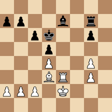 Capablanca, Jose Raul – Corzo y Prinzipe, Juan ارسال شده توسط نویسنده اخبار شطرنج یار در اردیبهشت ۱۳, ۱۴۰۴ ۰ نظر (No content to display) Capablanca, Jose Raul Corzo y Prinzipe, Juan Result: 1/2-1/2 Metadata » Click to open. Date: 1901.??.?? Location: Havana Tournament: Havana m Round: 7 Opening: A83 Dutch Defence, Staunton Gambit, Staunton's line 2.e4 fxe4 3.Nc3 Nf6 4.Bg5 Submitted by: Published on: اردیبهشت ۱۳, ۱۴۰۴ Categories: بازی های کاپابلانکا [Event "Havana m"] [Site "Havana"] [Date "1901.??.??"] [Round "7"] [White "Capablanca, Jose Raul"] [Black "Corzo y Prinzipe, Juan"] [Result "1/2-1/2"] [WhiteElo ""] [BlackElo ""] [ECO "A83"] 1.d4 f5 2.e4 fxe4 3.Nc3 Nf6 4.Bg5 c6 5.Bxf6 exf6 6.Nxe4 d5 7.Ng3 Bd6 8.Bd3 Be6 9.Qe2 Kd7 10.O-O-O g6 11.h4 f5 12.h5 f4 13.Re1 fxg3 14.Qxe6+ Kc7 15.fxg3 Nd7 16.hxg6 hxg6 17.Rxh8 Qg5+ 18.Qe3 Qxe3+ 19.Rxe3 Rxh8 20.Nh3 Nf8 21.Kd2 Rg8 22.Ng5 Kd7 23.Ke2 Rg7 24.Rf3 Ne6 25.Nxe6 Kxe6 26.g4 Be7 27.Re3+ Kd6 28.g3 1/2-1/2 [Event "Havana m"] [Site "Havana"] [Date "1901.??.??"] [Round "7"] [White "Capablanca, Jose Raul"] [Black "Corzo y Prinzipe, Juan"] [Result "1/2-1/2"] [WhiteElo ""] [BlackElo ""] [ECO "A83"] 1.d4 f5 2.e4 fxe4 3.Nc3 Nf6 4.Bg5 c6 5.Bxf6 exf6 6.Nxe4 d5 7.Ng3 Bd6 8.Bd3 Be6 9.Qe2 Kd7 10.O-O-O g6 11.h4 f5 12.h5 f4 13.Re1 fxg3 14.Qxe6+ Kc7 15.fxg3 Nd7 16.hxg6 hxg6 17.Rxh8 Qg5+ 18.Qe3 Qxe3+ 19.Rxe3 Rxh8 20.Nh3 Nf8 21.Kd2 Rg8 22.Ng5 Kd7 23.Ke2 Rg7 24.Rf3 Ne6 25.Nxe6 Kxe6 26.g4 Be7 27.Re3+ Kd6 28.g3 1/2-1/2 White to move: find the best move... click the ? for the solution Black to move: find the best move... click the ? for the solution Warning: This game can only be seen if JavaScript is enabled in your browser.