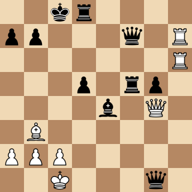 Gunsberg, Isidor – Capablanca, Jose Raul ارسال شده توسط نویسنده اخبار شطرنج یار در اردیبهشت ۱۳, ۱۴۰۴ ۰ نظر (No content to display) Gunsberg, Isidor Capablanca, Jose Raul Result: 0-1 Metadata » Click to open. Date: 1914.??.?? Location: St Petersburg Tournament: St Petersburg prel Round: ? Opening: C33 King's Gambit Accepted Submitted by: Published on: اردیبهشت ۱۳, ۱۴۰۴ Categories: بازی های کاپابلانکا [Event "St Petersburg prel"] [Site "St Petersburg"] [Date "1914.??.??"] [Round "?"] [White "Gunsberg, Isidor"] [Black "Capablanca, Jose Raul"] [Result "0-1"] [WhiteElo ""] [BlackElo ""] [ECO "C33"] 1.e4 e5 2.f4 exf4 3.Bc4 Nf6 4.Nc3 Bb4 5.e5 d5 6.Bb3 Ne4 7.Nf3 c6 8.Qe2 Bxc3 9.dxc3 g5 10.Nd2 Bf5 11.Nxe4 Bxe4 12.Bd2 Nd7 13.c4 Qe7 14.cxd5 cxd5 15.Bc3 O-O-O 16.e6 Nf6 17.exf7 Qxf7 18.O-O-O Rhe8 19.h4 h6 20.hxg5 hxg5 21.Rh6 Re6 22.Bxf6 Rxf6 23.Qg4+ Rf5 24.Rdh1 f3 25.Rh7 fxg2 26.R1h6 g1=Q+ 0-1 [Event "St Petersburg prel"] [Site "St Petersburg"] [Date "1914.??.??"] [Round "?"] [White "Gunsberg, Isidor"] [Black "Capablanca, Jose Raul"] [Result "0-1"] [WhiteElo ""] [BlackElo ""] [ECO "C33"] 1.e4 e5 2.f4 exf4 3.Bc4 Nf6 4.Nc3 Bb4 5.e5 d5 6.Bb3 Ne4 7.Nf3 c6 8.Qe2 Bxc3 9.dxc3 g5 10.Nd2 Bf5 11.Nxe4 Bxe4 12.Bd2 Nd7 13.c4 Qe7 14.cxd5 cxd5 15.Bc3 O-O-O 16.e6 Nf6 17.exf7 Qxf7 18.O-O-O Rhe8 19.h4 h6 20.hxg5 hxg5 21.Rh6 Re6 22.Bxf6 Rxf6 23.Qg4+ Rf5 24.Rdh1 f3 25.Rh7 fxg2 26.R1h6 g1=Q+ 0-1 White to move: find the best move... click the ? for the solution Black to move: find the best move... click the ? for the solution Warning: This game can only be seen if JavaScript is enabled in your browser.