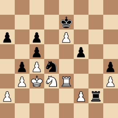 Ilyin Zhenevsky, Alexander – Botvinnik, Mikhail ارسال شده توسط نویسنده اخبار شطرنج یار در اردیبهشت ۱۳, ۱۴۰۴ ۰ نظر (No content to display) Ilyin Zhenevsky, Alexander Botvinnik, Mikhail Result: 1/2-1/2 Metadata » Click to open. Date: 1926.??.?? Location: Leningrad Tournament: Leningrad tt Round: ? Opening: C68 Spanish - Ruy Lopez, Exchange Variation Submitted by: Published on: اردیبهشت ۱۳, ۱۴۰۴ Categories: بازی های میخائیل باتوینیک [Event "Leningrad tt"] [Site "Leningrad"] [Date "1926.??.??"] [Round "?"] [White "Ilyin Zhenevsky, Alexander"] [Black "Botvinnik, Mikhail"] [Result "1/2-1/2"] [WhiteElo ""] [BlackElo ""] [ECO "C68"] 1.e4 e5 2.Nf3 Nc6 3.Bb5 a6 4.Bxc6 dxc6 5.Nc3 f6 6.d4 exd4 7.Qxd4 Qxd4 8.Nxd4 Bd6 9.Nce2 Ne7 10.Bf4 Bxf4 11.Nxf4 Kf7 12.O-O-O b6 13.Rhe1 g5 14.Nd3 c5 15.Nf3 Nc6 16.b3 Bg4 17.h3 Bxf3 18.gxf3 Rad8 19.f4 gxf4 20.Nxf4 Nd4 21.Nd5 Rd7 22.Rd3 Re8 23.Kd1 b5 24.c3 Ne6 25.Kc2 c6 26.Nf4 Rxd3 27.Nxd3 Rg8 28.Re3 Rg2 29.c4 h5 30.Kc3 h4 31.e5 f5 32.Rf3 Nd4 33.e6+ Ke7 34.Re3 b4+ 1/2-1/2 [Event "Leningrad tt"] [Site "Leningrad"] [Date "1926.??.??"] [Round "?"] [White "Ilyin Zhenevsky, Alexander"] [Black "Botvinnik, Mikhail"] [Result "1/2-1/2"] [WhiteElo ""] [BlackElo ""] [ECO "C68"] 1.e4 e5 2.Nf3 Nc6 3.Bb5 a6 4.Bxc6 dxc6 5.Nc3 f6 6.d4 exd4 7.Qxd4 Qxd4 8.Nxd4 Bd6 9.Nce2 Ne7 10.Bf4 Bxf4 11.Nxf4 Kf7 12.O-O-O b6 13.Rhe1 g5 14.Nd3 c5 15.Nf3 Nc6 16.b3 Bg4 17.h3 Bxf3 18.gxf3 Rad8 19.f4 gxf4 20.Nxf4 Nd4 21.Nd5 Rd7 22.Rd3 Re8 23.Kd1 b5 24.c3 Ne6 25.Kc2 c6 26.Nf4 Rxd3 27.Nxd3 Rg8 28.Re3 Rg2 29.c4 h5 30.Kc3 h4 31.e5 f5 32.Rf3 Nd4 33.e6+ Ke7 34.Re3 b4+ 1/2-1/2 White to move: find the best move... click the ? for the solution Black to move: find the best move... click the ? for the solution Warning: This game can only be seen if JavaScript is enabled in your browser.