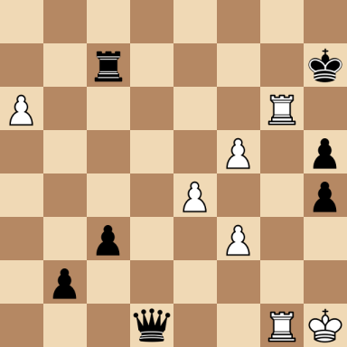 Smyslov, Vassily – Botvinnik, Mikhail ارسال شده توسط نویسنده اخبار شطرنج یار در اردیبهشت ۱۳, ۱۴۰۴ ۰ نظر (No content to display) Smyslov, Vassily Botvinnik, Mikhail Result: 0-1 Metadata » Click to open. Date: 1941.??.?? Location: Leningrad Tournament: Leningrad/Moscow Round: 3 Opening: C77 Spanish - Ruy Lopez, Morphy Defence Submitted by: Published on: اردیبهشت ۱۳, ۱۴۰۴ Categories: بازی های میخائیل باتوینیک [Event "Leningrad/Moscow"] [Site "Leningrad"] [Date "1941.??.??"] [Round "3"] [White "Smyslov, Vassily"] [Black "Botvinnik, Mikhail"] [Result "0-1"] [WhiteElo ""] [BlackElo ""] [ECO "C77"] 1.e4 e5 2.Nf3 Nc6 3.Bb5 a6 4.Ba4 Nf6 5.d3 d6 6.c3 Be7 7.O-O O-O 8.Re1 b5 9.Bc2 d5 10.Nbd2 dxe4 11.dxe4 Be6 12.h3 h6 13.Nh2 Nh7 14.Ng4 Bg5 15.Qe2 Qd6 16.Ne3 Rfd8 17.Nf3 Bxe3 18.Qxe3 Qe7 19.Nh2 Nf8 20.Qf3 Rd7 21.Nf1 Nh7 22.Ng3 Rad8 23.Nf5 Qf6 24.g4 Ne7 25.Qg3 Bc4 26.f3 Bd3 27.Bb3 c5 28.Be3 c4 29.Bd1 Ng5 30.h4 Ne6 31.a4 b4 32.cxb4 Nf4 33.Kh1 g5 34.b5 a5 35.Bc5 Nxf5 36.gxf5 Kh7 37.Qg4 gxh4 38.Rg1 h5 39.Qg5 Qxg5 40.Rxg5 f6 41.Rg1 Nh3 42.Re1 Rg8 43.Ra2 Bb1 44.Ra1 Bd3 45.Ra2 Nf4 46.b4 Rc8 47.b6 Rb7 48.Be3 axb4 49.a5 b3 50.Ra3 b2 51.Ba4 c3 52.Rb3 Ne2 53.Bb5 Bxb5 54.Rxb5 Nd4 55.Bxd4 exd4 56.a6 Rxb6 57.Rxb6 d3 58.Rg1 d2 59.Rxf6 Rc7 60.Rfg6 d1=Q 0-1 [Event "Leningrad/Moscow"] [Site "Leningrad"] [Date "1941.??.??"] [Round "3"] [White "Smyslov, Vassily"] [Black "Botvinnik, Mikhail"] [Result "0-1"] [WhiteElo ""] [BlackElo ""] [ECO "C77"] 1.e4 e5 2.Nf3 Nc6 3.Bb5 a6 4.Ba4 Nf6 5.d3 d6 6.c3 Be7 7.O-O O-O 8.Re1 b5 9.Bc2 d5 10.Nbd2 dxe4 11.dxe4 Be6 12.h3 h6 13.Nh2 Nh7 14.Ng4 Bg5 15.Qe2 Qd6 16.Ne3 Rfd8 17.Nf3 Bxe3 18.Qxe3 Qe7 19.Nh2 Nf8 20.Qf3 Rd7 21.Nf1 Nh7 22.Ng3 Rad8 23.Nf5 Qf6 24.g4 Ne7 25.Qg3 Bc4 26.f3 Bd3 27.Bb3 c5 28.Be3 c4 29.Bd1 Ng5 30.h4 Ne6 31.a4 b4 32.cxb4 Nf4 33.Kh1 g5 34.b5 a5 35.Bc5 Nxf5 36.gxf5 Kh7 37.Qg4 gxh4 38.Rg1 h5 39.Qg5 Qxg5 40.Rxg5 f6 41.Rg1 Nh3 42.Re1 Rg8 43.Ra2 Bb1 44.Ra1 Bd3 45.Ra2 Nf4 46.b4 Rc8 47.b6 Rb7 48.Be3 axb4 49.a5 b3 50.Ra3 b2 51.Ba4 c3 52.Rb3 Ne2 53.Bb5 Bxb5 54.Rxb5 Nd4 55.Bxd4 exd4 56.a6 Rxb6 57.Rxb6 d3 58.Rg1 d2 59.Rxf6 Rc7 60.Rfg6 d1=Q 0-1 White to move: find the best move... click the ? for the solution Black to move: find the best move... click the ? for the solution Warning: This game can only be seen if JavaScript is enabled in your browser.